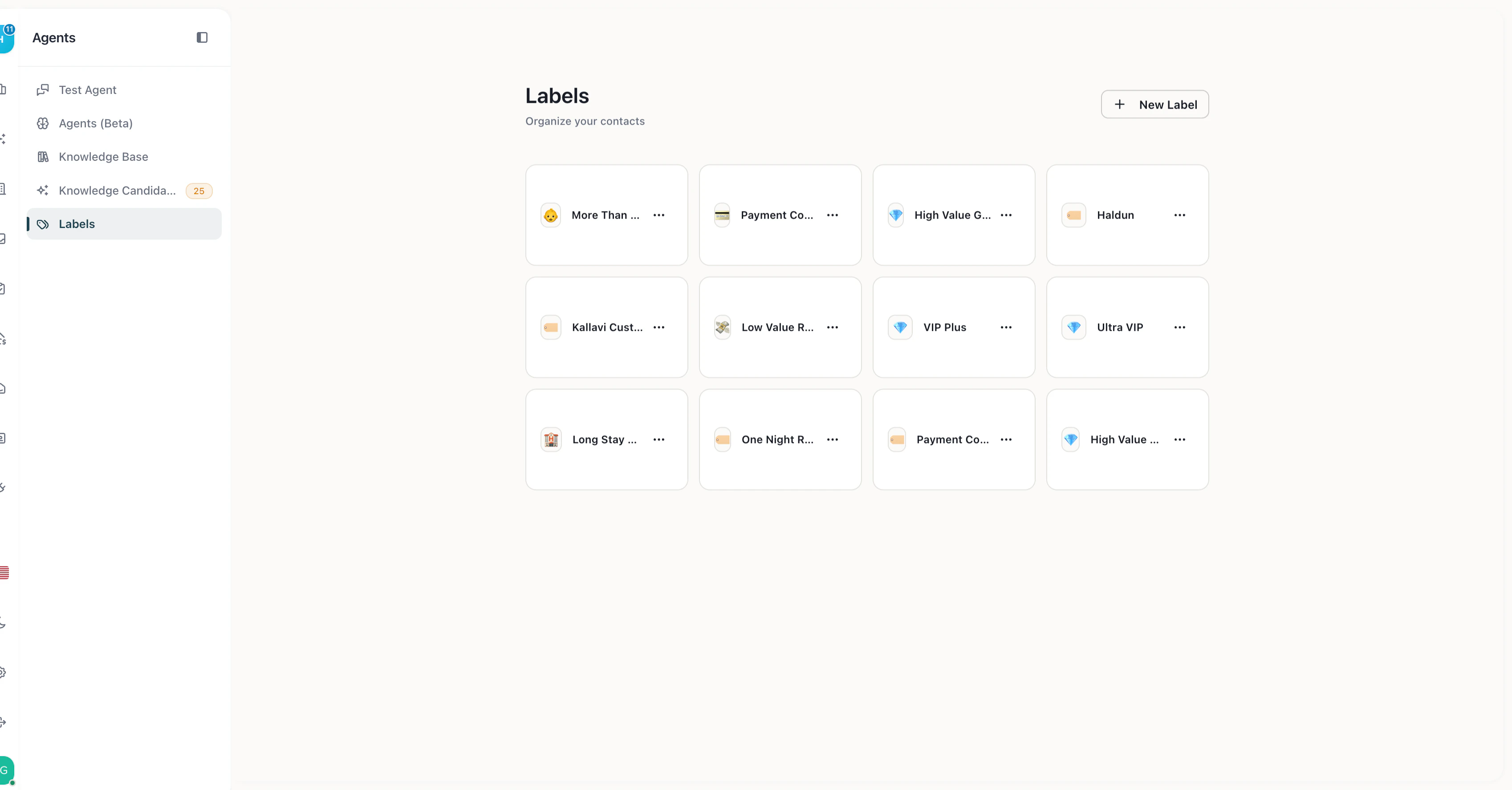 Navigate to Agent Hub → Labels to create and manage labels.
