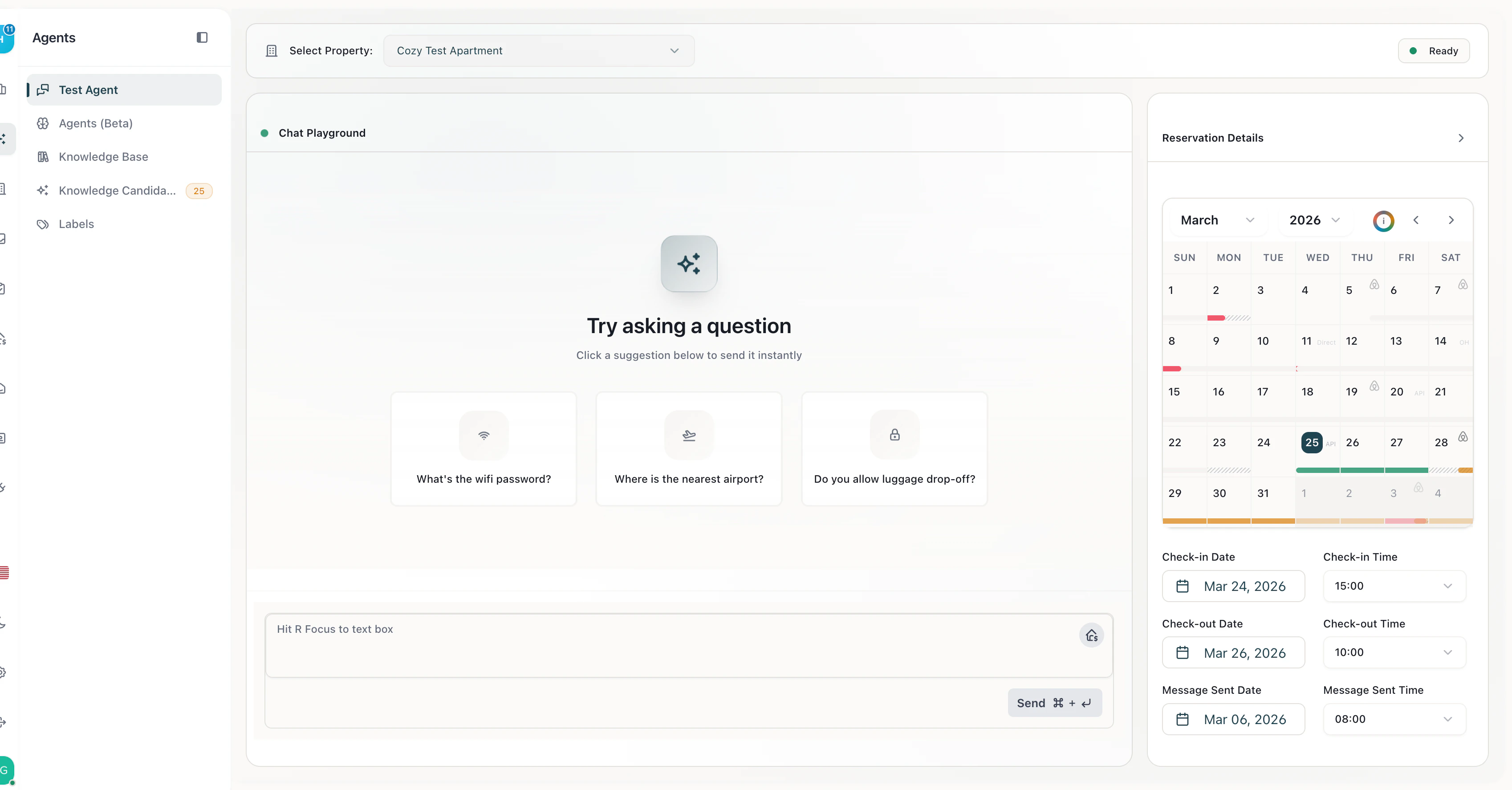 - Verify accuracy — confirm the AI answers common questions correctly using your property data